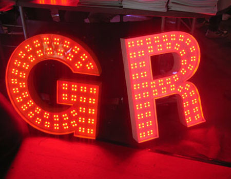 外露發(fā)光字又被稱為不銹鋼沖孔發(fā)光字、鈦金字、鋅鐵字等,分別由不銹鋼板,鈦金板,鍍鋅鐵板沖孔后,裝上LED防水燈串制作而成。在制作前要先選好材料,做什么字,選什么材料,根據(jù)字體大小,安裝的位置和客戶的要求,選擇相應(yīng)的板材,然后把整張的板材用機(jī)床進(jìn)行沖孔,然后用刻機(jī)對(duì)面板刻出字形,然后把刻好的字焊接成立體邊,再進(jìn)行打磨光滑,避免毛刺。然后就是噴烤油漆,油漆干后,就可以裝LED單顆燈串了,裝燈串的時(shí)候務(wù)必要考慮能夠方便接線,每顆燈用橡膠套做風(fēng)水處理,這么做也比較有利于后期對(duì)外露發(fā)光字進(jìn)行維護(hù)。