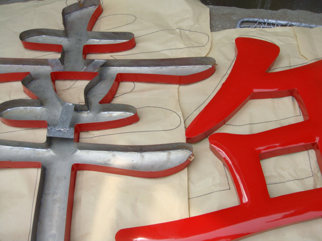 鐵皮烤漆字 鐵皮烤漆字可以根據(jù)字面意思分為兩部分進(jìn)行理解,第一部分是鐵皮,第二部分是烤漆。鐵皮烤漆由于顏色多變,可以根據(jù)客戶的要求制作不同的顏色而受到廣大消費(fèi)者的喜愛(ài)??梢允羌で檠笠绲募t色,可以是明亮的黃色等。 鐵皮烤漆發(fā)光字工藝和不銹鋼發(fā)光字工藝大體相差不多。都是要用機(jī)械進(jìn)行加工。